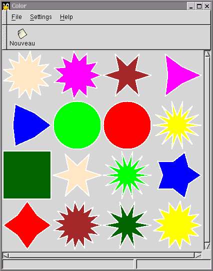 Gnome-Python programlamaya bir ilk yaklaşım olarak, çocukların aynı renkteki şekilleri tanımasını gerektiren basit bir renk oyununu öneririm. Bu örnek grafiğe yöneliktir ve Gnome Canvas ve Gnome Uygulama Penceresi gibi Gnome'un güzel özelliklerini sunar. oyunun kuralları oldukça basittir: Oyun tahtası değişik renlere sahip 16 şekil - daireler, yıldızlar ve kareler - ile doldurulmuştur. Bu 16 şekil 8 çift özdeş renge bölünmüştür. Oyunu bitirmek için sadece bu 8 çifti başarıyla seçmek gerekir. Fikir edinmek için bu makalenin sonundaki kaynak koda bakmak ve sonra buradan tekrar başlamak isteyebilirsiniz.